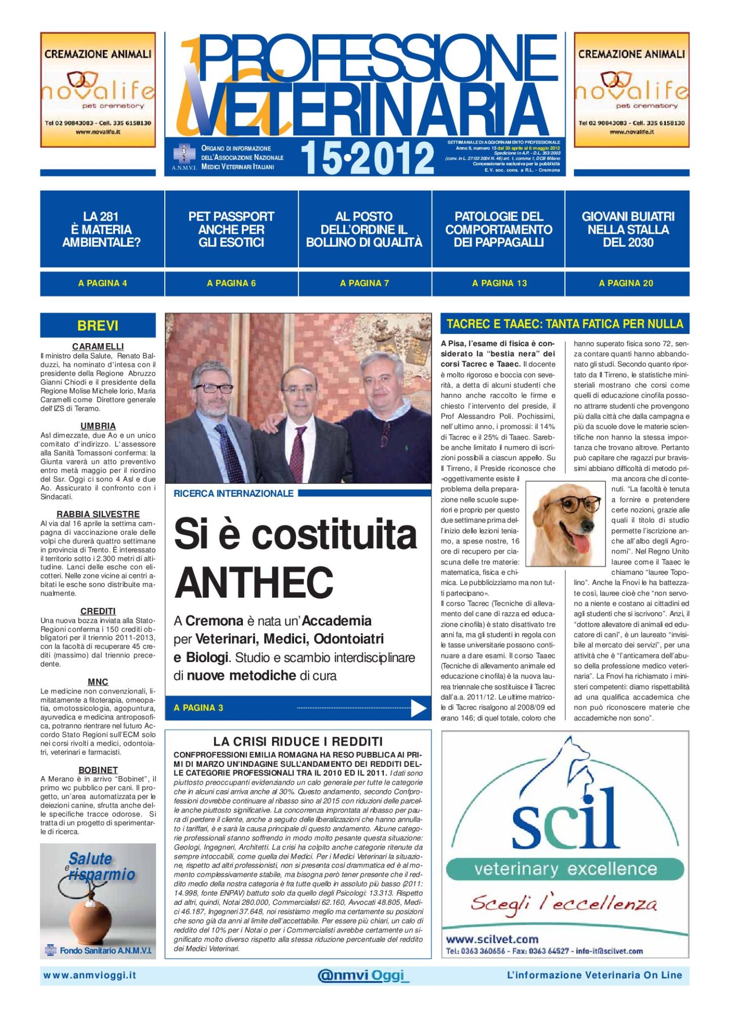 Consulta Professione Veterinaria selezionando l’anno. L’archivio digitale è disponibile dall’anno 2000