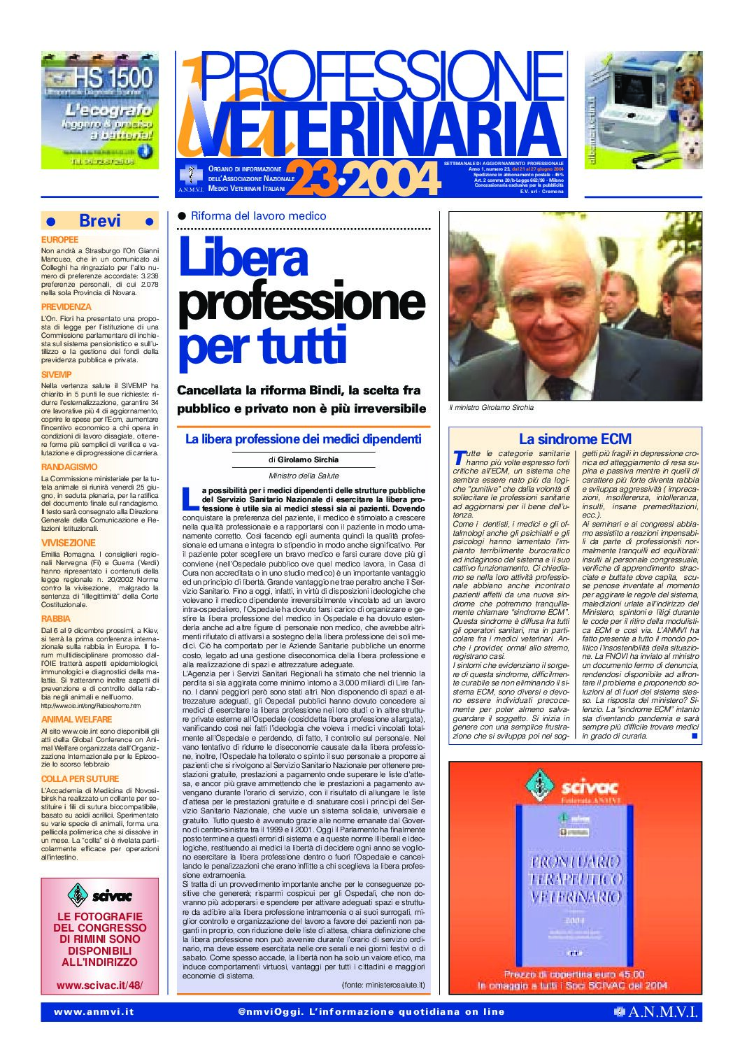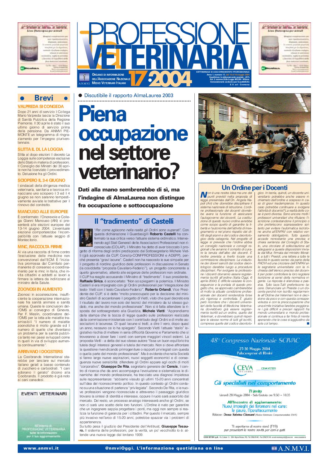 Consulta Professione Veterinaria selezionando l’anno. L’archivio digitale è disponibile dall’anno 2000