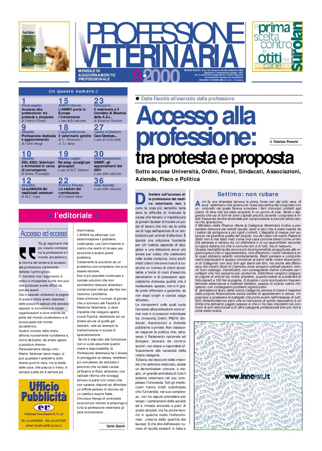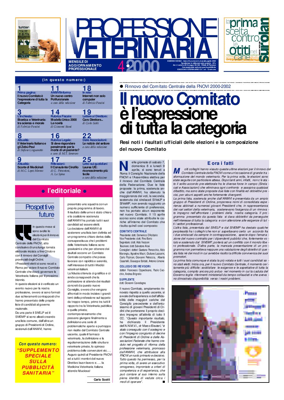Consulta Professione Veterinaria selezionando l’anno. L’archivio digitale è disponibile dall’anno 2000