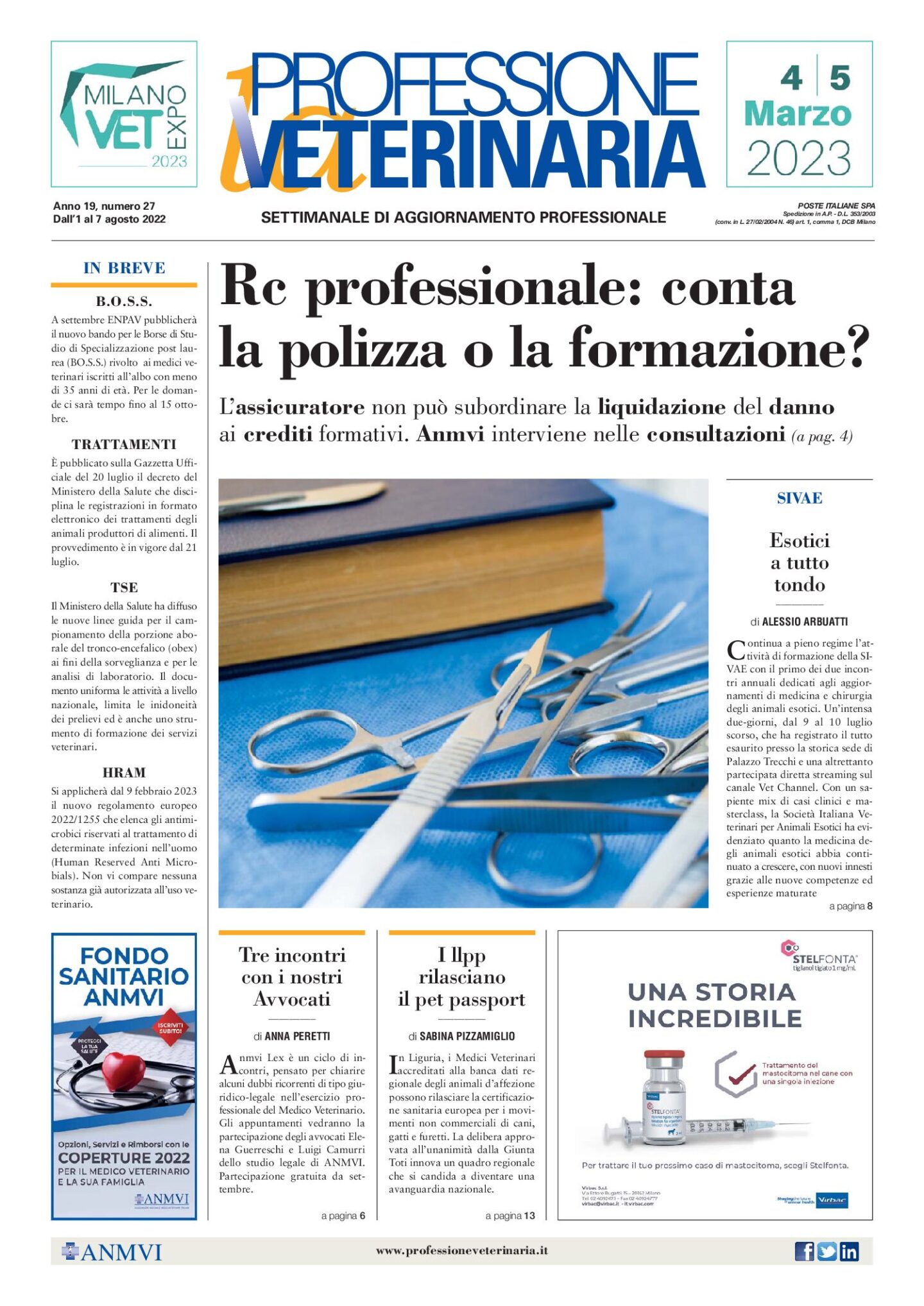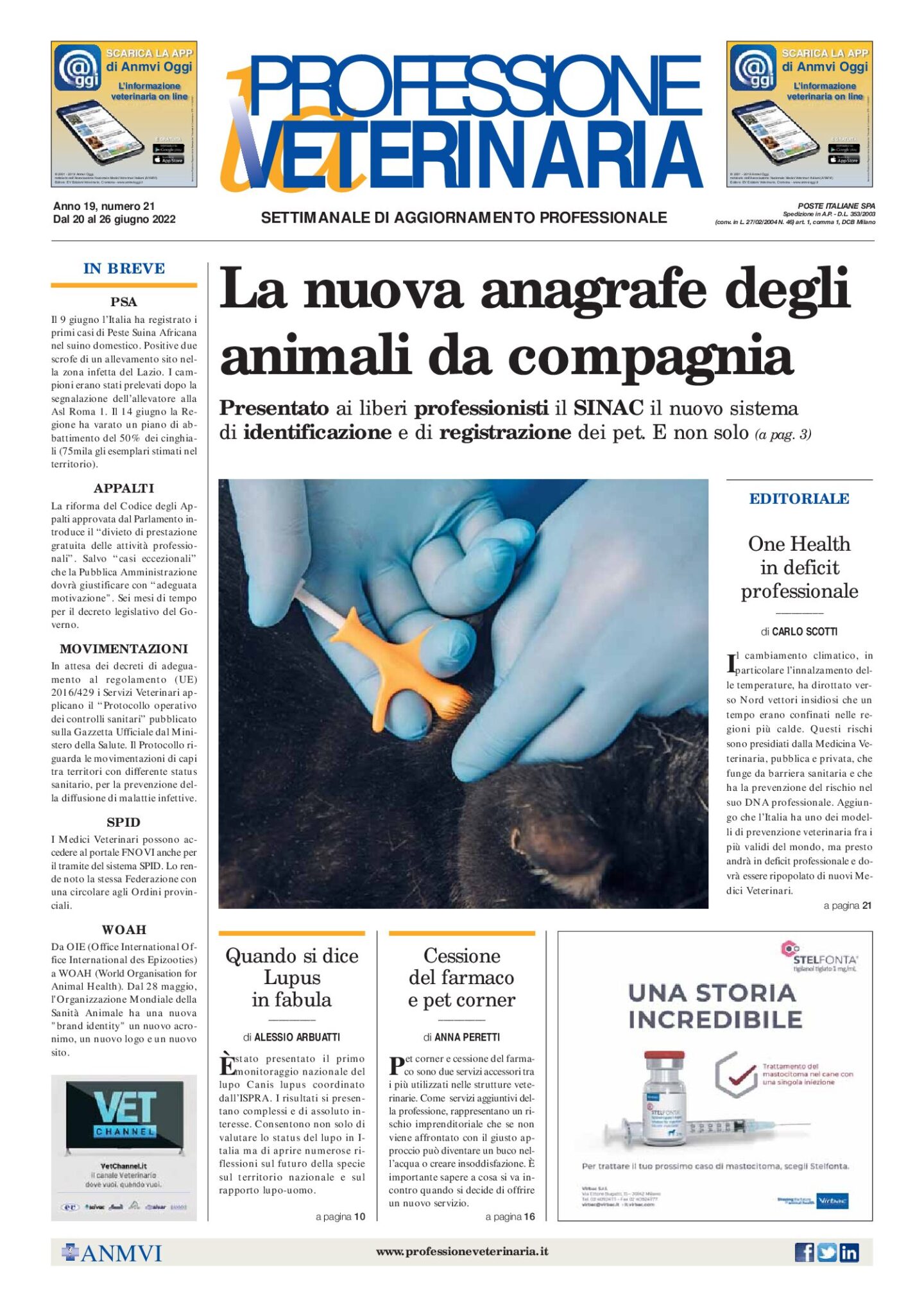 Consulta Professione Veterinaria selezionando l’anno. L’archivio digitale è disponibile dall’anno 2000